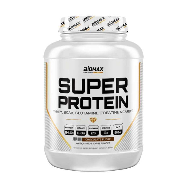 ביומקס סופר פרוטאין – אבקת חלבון פרימיום מבית BIOMAX בעלת פורמולה משודרגת ייחודית המכילה את כל מה שצריך לפיתוח גוף ולתוצאות מקסימליות במוצר אחד! מכילה חלבון WHEY WPC אמריקאי + חומצות אמינו BCAA + חומצת אמינו ל-גלוטמין + קריאטין + פחמימה זמינה – והכל במוצר אחד! אבקת חלבון כשרה בהשגחת הרבנות כרמיאל – אבקת חלב נוכרית (ארה”ב), מכיל 60 מנות הגשה